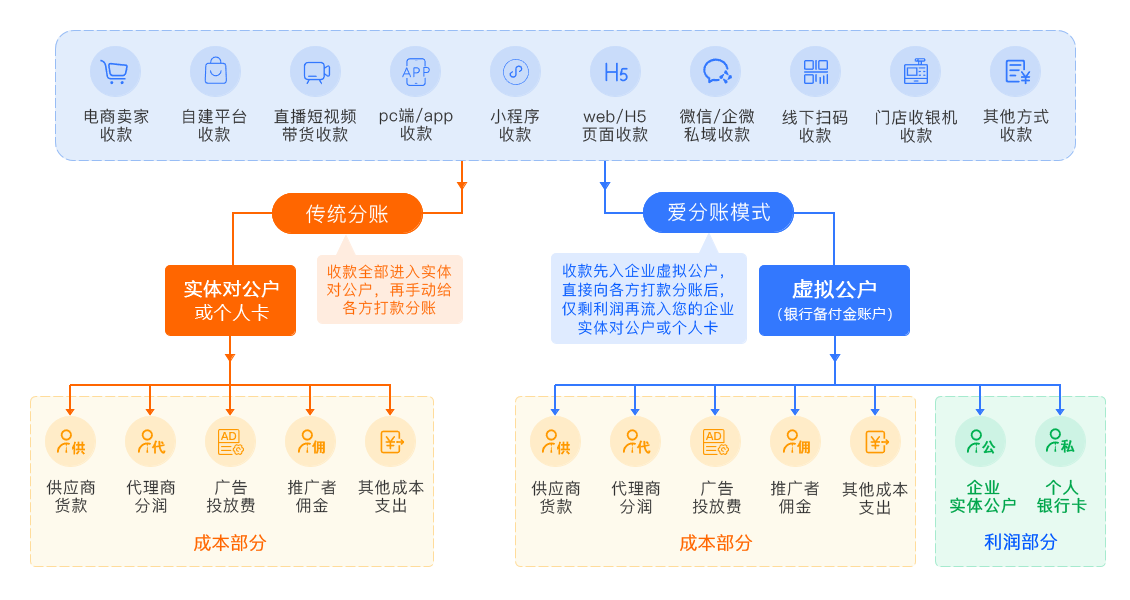 全域收款+虚拟公户+分账系统